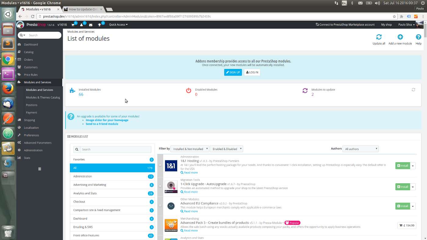 This Tutorial is a detailed How To aimed for Prestashop beginners, therefore I will not expected, from you, any knowledge at all about Prestasho Admin Interface. Step by Step to Update a Module in Prestashop Version 1.6.* During this Prestashop Tutorial the Url used to reach the Prestashop Back Office will be prestashop-tutorials.dev/v1616/secret-admin-folder and your one should be your-domain.com/your-secret-admin-folder or if your store is not in the root folder then it should be like your-domain.